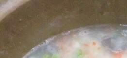 2、把猪骨汤放到锅中加适量清水开火烧开,再放入浸泡以后的大米煮开以后调小火力,继续煮制二十分钟,把切好的山药丁入锅一起煮,煮十分钟左右就可以。