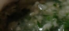 4、等锅中的肉沫煮熟,粥变得软糯粘稠,以后再把准备好的姜末,葱末以及少量食用盐,一起放入粥中调味,调匀以后,加入剁碎的菠菜末,一起煮熟,然后关火,暂时不要急着打开锅盖,可以让粥在锅中焖十分钟,然后取出装碗,降温以后给家中的宝宝食用就可以。