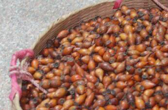 2、把采摘以后的金樱子去掉表面的刺儿,然后用清水把它洗净,再用刀把它切成两半,去掉中间的籽儿,放到阳光下晒干备用。如果没有条件自己去采摘金樱子,则可以去药材市场购买那些高质量的金樱子。