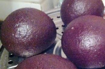 3、把食用碱水准备好,倒入到面团中揉匀,再加入少量白面粉,揉匀以后分成小记子,然后揉成馒头的样子,入蒸锅蒸制,开锅以后蒸制二十分钟,锅中的紫米馒头就能熟透,这时关火,过五分钟,打开锅盖把馒头取出,降温以后就能食用。