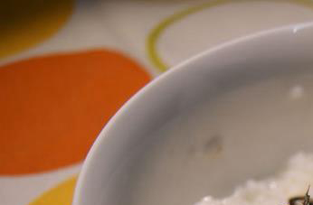 第四步:煮一锅粥,等到粥即将煮至半成熟的时候放入之前的吞拿鱼肉末。