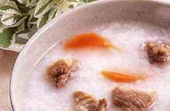 第一步:将猪脊肉的毛去除掉,洗净后砍刀砍成小块。第二步:将猪脊肉块放入水中汆掉血水后重新加水开火炖煮。第三步:将大米淘洗干净后用清水煮开,等到粥半分熟的时候加入猪脊肉熬煮的浓汁再接着煮。第四步:猪脊肉完全熟透后,放入葱姜片再煮半个小时后取出。第五步:将猪脊肉放入粥中一起炖煮到酥烂即可完成。第六步:出锅后撒上葱花。二、猪脊肉粥的营养价值