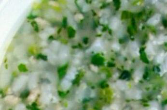 5、锅中的粥煮好的把切好的菠菜末放入到锅中调匀,最后出锅以前再加入食用盐和味精等材料调味,调匀以后即可取出装碗食用。