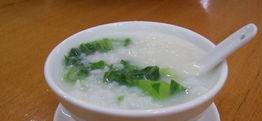 4.粥将熬好时,放入银鱼及芥菜末,以旺火同煮片刻,然后加盐调好味,即可盛起食用。