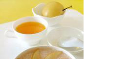3.在小锅中放入清水和酥梨块,煮成梨水。