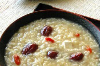 先将红枣文火煮烂,连汤放入粳米粥内,加茯苓粉再煮粉沸即成。
