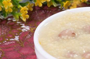 2.花生米、山药与粳米,同煮为粥;