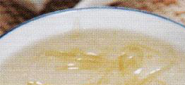 鸡粥调生粉要注意用量,多了即成糊状,少了将成雪花状。