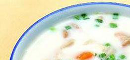 2、 将厚粥、熟肉末、菠菜泥、土豆泥、及适量高汤放入锅内,小火烧开煮烂后;