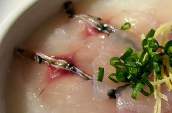 鱼片,生粉,盐,蛋清,姜丝,葱花,大骨汤