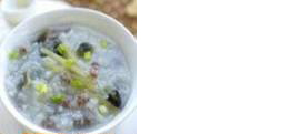【原料】皮蛋1个,淡菜50克,大米100克,盐、味精适量。