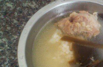 4.倒入排骨,煮十分钟,再倒入海带,再小火煮十分钟,适当加些盐来调味即可。
