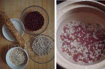 1、红豆和薏米洗净后,放后砂锅中,加水盖好盖子,中火加热至锅中水煮开,再煮2-3分钟,关火,不要开盖,焖30分钟;