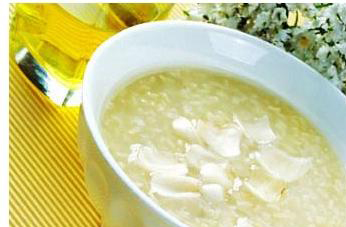 制法:以沸水煮冰糖,随后加入淘洗干净的粳米,煮至粥熟时放入已剥皮去核的枇杷肉,再煮10分钟即可。