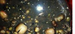 薏仁1两,莲子1两,荸荠4粒,红豆支少许,葱半条,白粥半碗,鱼高汤1碗,盐1茶匙,米酒1茶匙