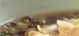 大米、150克、猪瘦肉、300克、绿豆、40克、红豆、40克、干百合、40克、生姜、少许。