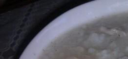 和各位说说粥里都有啥物件吧:梗米、冰糖、姜末、山药、枸杞。一锅煮。是亦食亦药的食补粥,温胃补肾。