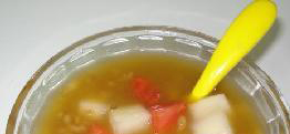 在炎热的夏天,喝上这么一碗水果粥,真是养颜又解渴.一提到维生素C,许多朋友就不由自主地想到水果,甚至有人认为,只要经常吃水果,就不会缺乏维生素C,其实这种看法是片面的。水果中有的含有丰富的维生素C,有的维生素C的含量却很少。有资料表明,猕猴桃、鲜枣、草莓、枇杷、橙、橘、柿子等含有丰富的维生素C。以100克水果的维生素C的含量来计算,猕猴桃含420毫克,鲜枣含380毫克,草莓含80毫克,橙含49毫克,枇杷含36毫克,橘、柿子各含30毫克。香蕉,桃子各含10毫克,葡萄、无花果、苹果各自只有5毫克,梨仅含4毫克。