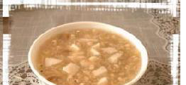 2、待米粒已经烂的时候,可以先放冰糖再加入龙眼肉及银耳、菠萝,因为这几种有点点难煮,后加入雪梨和橙子。再熬10分钟左右就可以了。