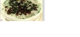 原料:无铅松花皮蛋1个,淡菜50克,大米、盐、味精各适量。