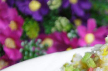 2. 将豌豆焯水,断生即可3. 胡萝卜粒焯水沥干备用4. 煎鸡蛋液5. 将焯过水的豌豆和胡萝卜粒倒入锅中炒6. 将米饭倒入锅中翻炒7. 加入少许辣椒酱翻炒至米粒全部分离就可盛盘相宜的黄金搭配