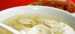 (5)将处理过的竹笙切段投入熬好的竹笋鸡汤,继续煮10分钟即可上桌。