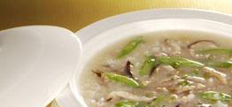 再将其放入沸腾的粥中划散,变色后加入一枚生鸡蛋,继续划散成蛋花状,佐以食盐贝露汁调味即可。