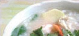 4. 将粳米淘洗干净后置于猪肚汤中熬煮成粥;
