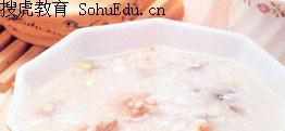 (4)锅开后再去沫,用小火煲至炊烂,加盐调味。
