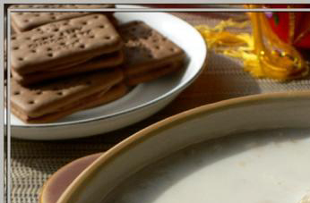 材料:芋头(蒸熟),麦片(速溶),红葡萄干,牛奶;