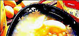 【功效主治】人参补虚扶正,味甘、微苦,性温。其主要成分为人参皂甙、草黄甙、挥发油、糖类等。药理研究表明人参能兴奋中枢神经系统,加快神经的传导,适量时使心脏收缩力加强;有改善消化吸收功能,增进食欲,促进蛋白质的合成等作用。前人认为人参“补五脏,明目益智。久服轻身延年”,人参同粳米煮粥,为一种科学的食疗方法,人参与粥相得益彰,大大增强人参的补益强壮作用。