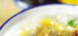 制法:黄豆 100 克(洗浸泡水中半天),芝麻炒焦研粉(可买现成的芝麻粉,超市有卖) 20 克。先用黄豆煮粥,可加高汤(罐装亦可),粥滚后再加入芝麻粉、盐调味即可。