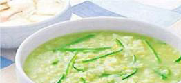 【制作】将鲜荷叶洗净煎汤,再用荷叶汤同粳米、冰糖煮粥。