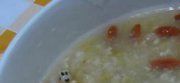 2、 入粳米、砂糖,再加水,同煮成稀粥。