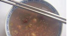 2 花生粥水1升,先用旺火煮开,再用文火煮20至30分钟,以米熟为准。