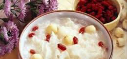 桂圆肉(龙眼肉)20克,莲子30克,大米100克。将莲子捣碎,和桂圆肉、大米煮成粥,临睡前两小时服用。