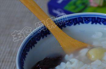 2、莲子洗净,放入粥内同煮,并加入冰糖调味,待冰糖融化即可熄火盛出食用。