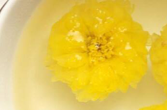 1、怀菊花的冲泡方法比较简单,想用它泡水喝的时候可以取5朵左右的怀菊花,直接放到干净玻璃杯中,这时需要冲入90度左右的开水,水的数量不要过多,刚刚淹没怀菊花就可以用手轻轻摇晃,让怀菊花与水充分接触,把它表面的浮尘洗干净以后,把水倒掉,再次向玻璃杯中冲水,冲水后3~5分钟就能取出里面的汤汁代茶饮用。
