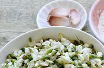 2、以后的槐花放到大点的盆中,加入准备好的花生油调匀,再放入准备好的面粉,调匀后让每个槐花表面都沾上适量面粉,随后把它放入蒸锅中隔水蒸制,开锅以后再蒸十分钟这时锅中的槐花就能蒸熟。在蒸槐花的过程中还要把大蒜捣成蒜泥并加入食用盐和生抽蚝油等调成料汁,等槐花蒸好以后取出可以直接蘸食料汁。