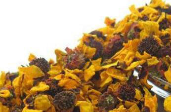 昆仑雪菊中含有多种天然氨基酸和一些微量元素,它能抑制皮肤中过氧化脂质的生成,而且能提高一些酶类成分的活性,平时经常用它泡水喝,或者把它制成面膜使用,能滋养细嫩肌肤,也能延缓皮肤衰老。