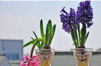风信子也叫洋水仙,它是百合科风信子属的一种植物,既能盆栽也能水养,它具有美丽的总状,花序花之娇美,五彩缤纷,清香宜人。而万年青则是一种美丽的观叶植物,它对环境的适应性特别强,平时适合在室内养殖,它叶片厚重革质,多为倒披针形,四季常绿,观赏价值特别高。