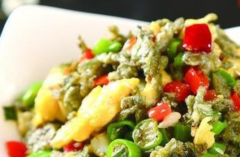 炒槐花的主要食材就是槐花,它是一种中药材,它性质寒凉,能往前肝经,具有清肝泻火的重要功效,平时人们把它炒制以后食用,可以预防多种上火症状的发生,同时也能清理身体内的热毒,让人类胃火过旺或者口舌生疮的症状很快好转。