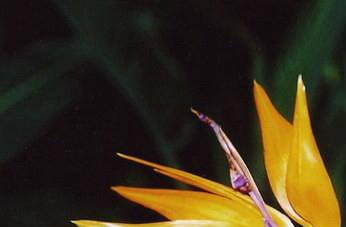 鹤望兰,旅人蕉科、鹤望兰属植物,原产南非。花茎高于叶片,花序水平伸长,花外瓣橘黄色,内瓣亮蓝色,柱头纯白色,形似仙鹤昂首远望。叶片长圆状披针形,因鹤望兰花形奇特、色泽艳丽、夏季可水养20天之多,而冬季可长达50天左右,有“鲜切花之王”之称。叶大姿美,花形奇特,盆栽鹤望兰适用于会议室、厅堂环境布置,具清新、高雅之感。南方地栽庭院,颇增天然景趣。