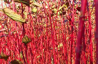 红瑞木是一种落叶灌木,它的老干是暗红色的,枝桠也是血红色,每年五到六月之间会开出乳白色的花,果实在八到十月之间成熟,外表为蓝白色。这种红瑞木是一种独特的观茎植物,也可以当成切枝材料,更加以入药。