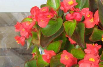 四季海棠花近叶片的不同可以分为两大类,一种四季海棠的叶子为红铜色,另外一种四季海棠的叶子则为绿色,它们在被阳光照射以后,会发生明显变化,变成独持的红绿色。