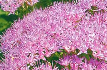 2.华丽景天植株整齐,生长健壮,花开时似一片粉烟,群体效果极佳,是布置花坛、花镜和点缀草坪、岩石园的好材料。