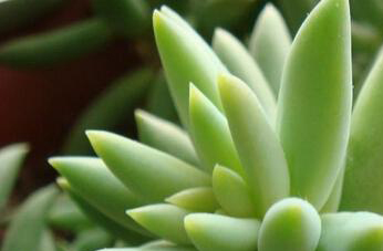 2、翡翠景天的叶子绿色,有汁液存在,而且顶端是尖状的,这种叶子的呼吸作用特别强,在呼吸时能把空气中的二氧化碳全部吸收,然后转化成氧气释放出来,从而起到净化室内空气和去除室内异味的作用。