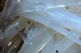 银鱼科动物尖头银鱼、长鳍银鱼的全体。银鱼又称王余鱼、脍残鱼、银条鱼、面条鱼。分布于我国山东至浙江沿海。攻得后,洗净鲜用或晒干备用。银鱼是极富钙质、高蛋白、低脂肪食的鱼类,基本没有大鱼刺,适宜小孩子食用。据现代营养学分析,银鱼营养丰富,具有高蛋白、低脂肪之特点。并认为银鱼不去鳍、骨,属“整体性食物”,营养完全,利于人体增进免疫功能和长寿。
