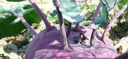 紫苤蓝,是球茎甘蓝的一个球茎外皮紫色的品种,别名土苤,擘蓝,紫芥蓝头,学名Brassica oleracea L.var.caulorapa D.C.,为十字花科芸薹属甘蓝种二年生草本植物,以膨大的肉质球茎为蔬。原产地中海沿岸,由叶用甘蓝变异而来,球茎的皮色多为绿色、绿白色、浅黄绿色,少数品种紫色。在德国栽培较为普遍。我国目前栽培的紫苤蓝大都从德国引进,作为特菜新品种栽培。