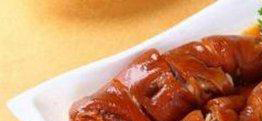 猪蹄营养丰富,味道可口。它不仅是常用菜肴,而且还是滋补佳品。据食品营养专家分析,每100克猪蹄中含蛋白质15.8克、脂肪26.3克、碳水化合物1.7克。猪蹄中还含有维生素A、B、C及钙、磷、铁等营养物质,尤其是猪蹄中的蛋白质水解后,所产生的胱氨酸、精氨酸等11种氨基酸之含量均与熊掌不相上下。